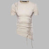 Asymmetrisch Beige Punk T-shirt met Vetersluiting