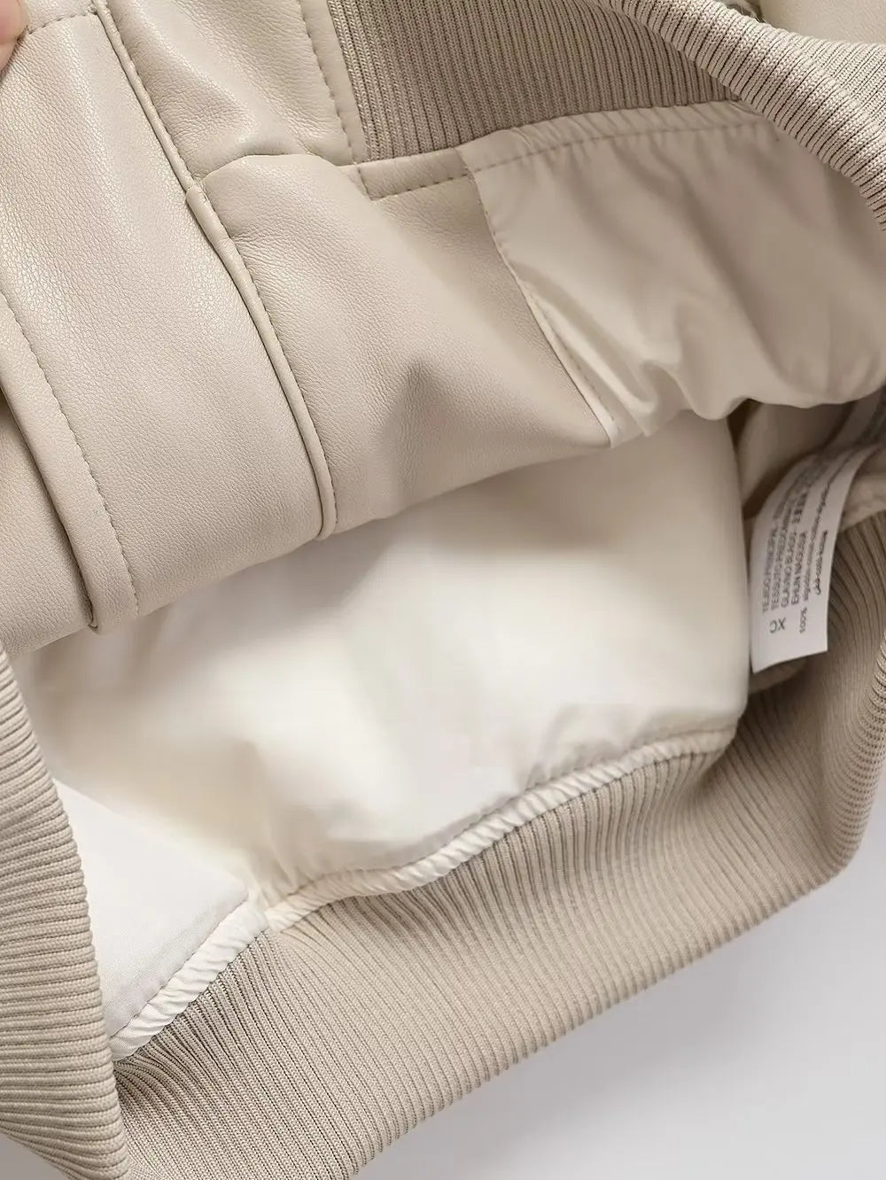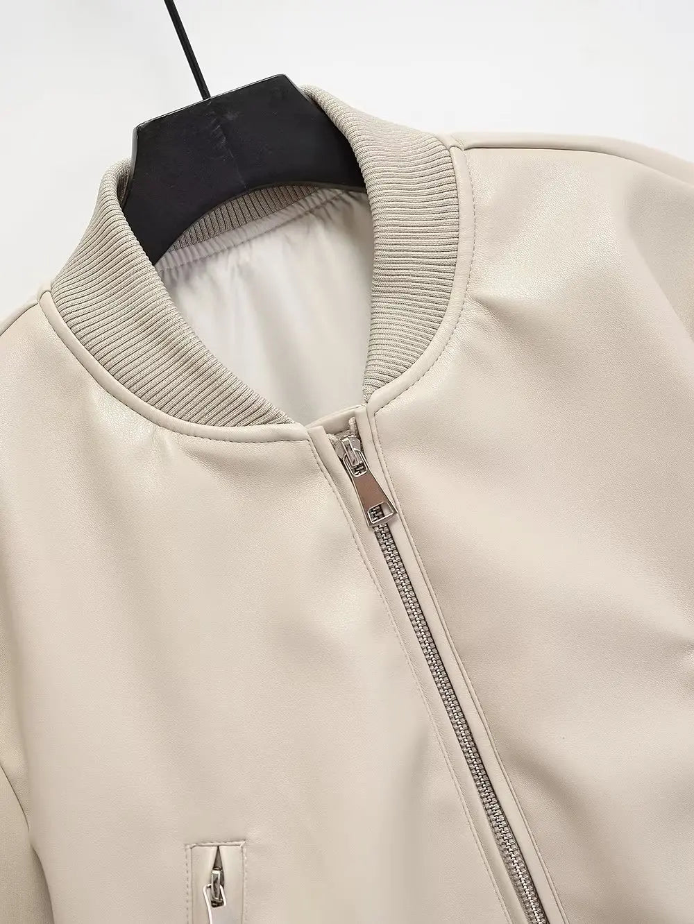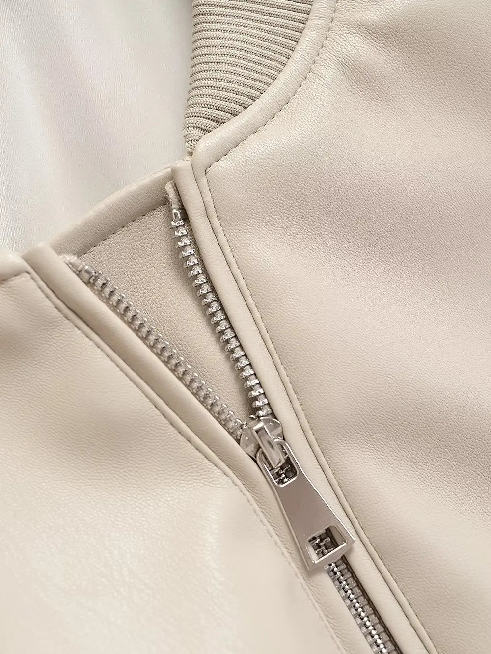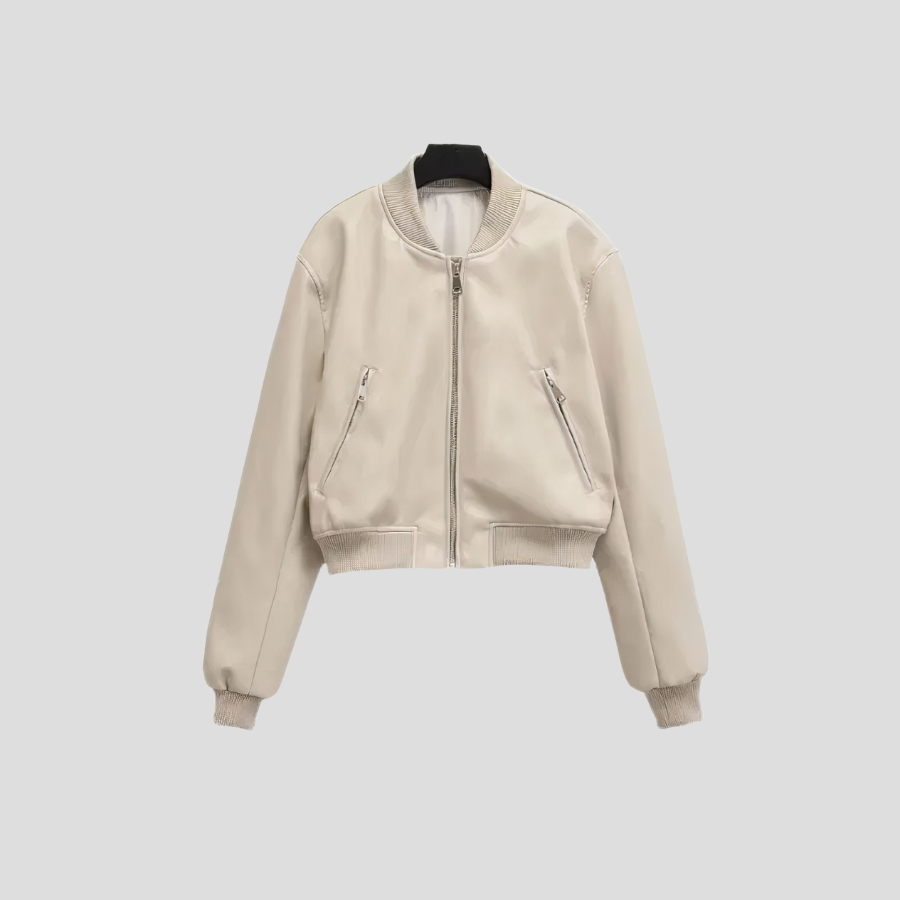 Beżowa Bomberka Punk Rock z Zamkami Ściąganymi Mankietami