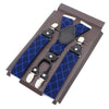 Blauwe Geruite Bretels met Verchroomde Metalen Clips