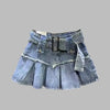 Blauwe Punk Jeansrok met Riem en Plooien Bekijk opties