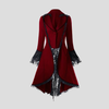 Bordowy Płaszcz Metal z Koronkowymi Rękawami i Sznurowaniem