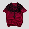 Bordeaux Metalen T-shirt met Vleugels en Kruis