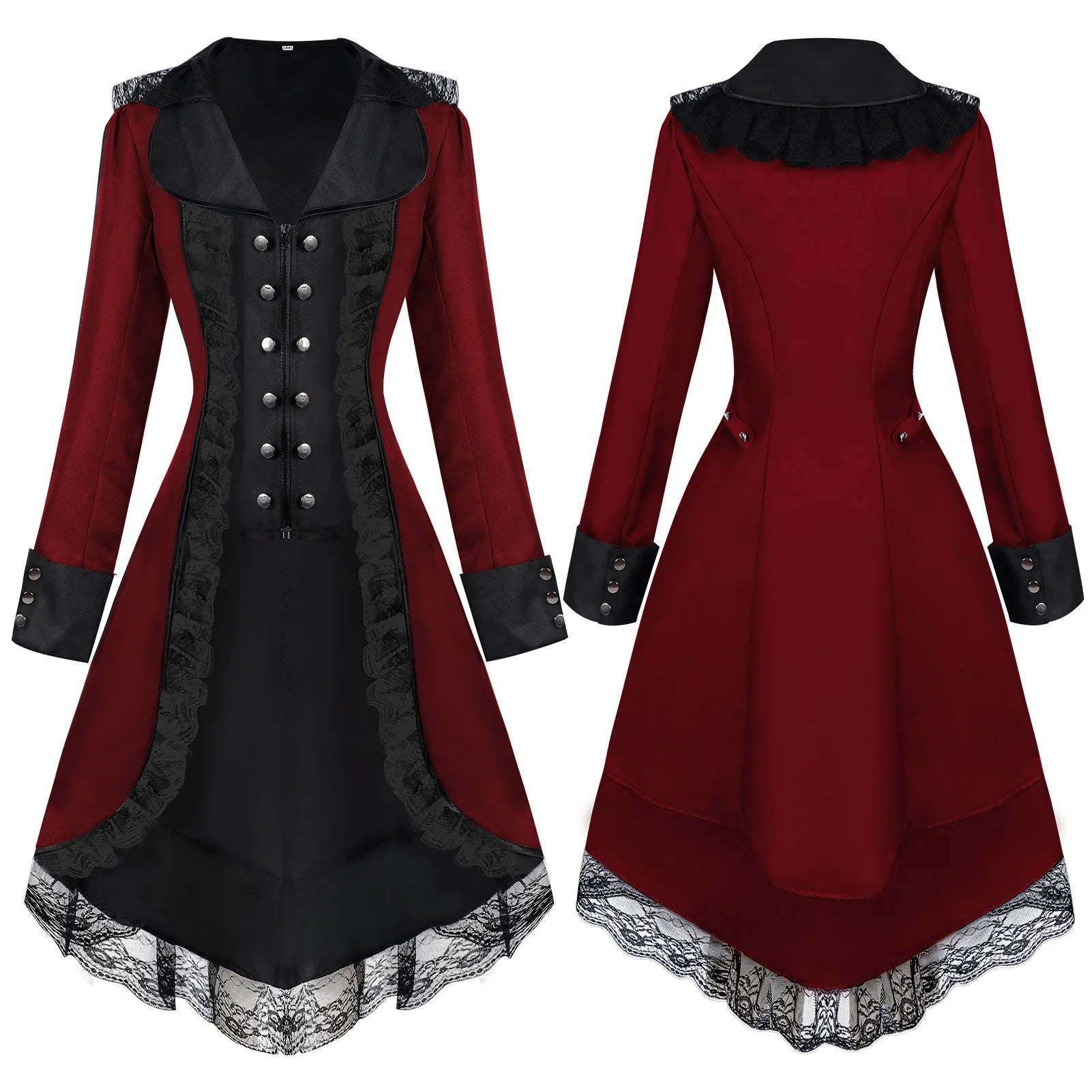 Bordeaux Steampunk Jurk met Zwart Korset en Kant Bekijk opties