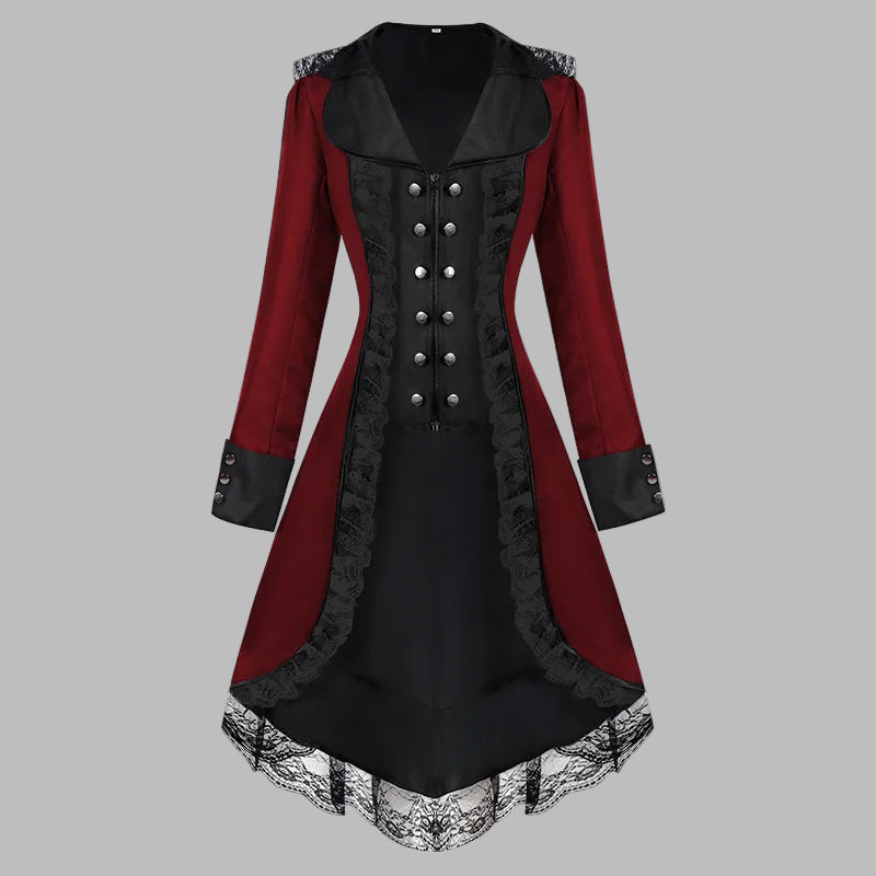 Bordeaux Steampunk Jurk met Zwarte Korset en Kant