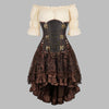Steampunk Jurk met Korset Kettingen en Kanten Rok Bruin 6XL