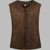 Bruine Steampunk Mouwloze Suède Gilet met Vetersluiting