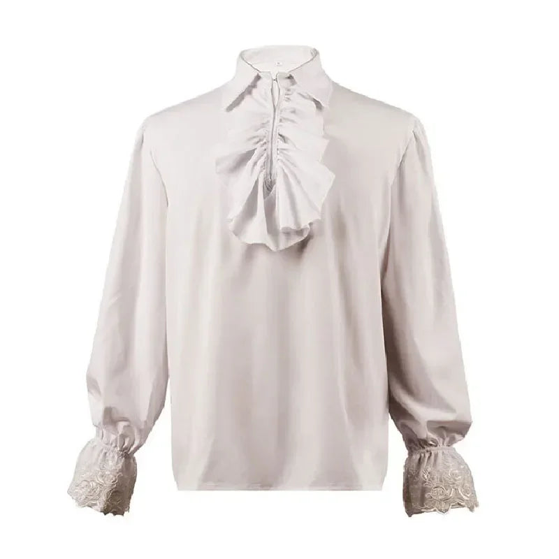 Kremowa Koszula Rock z Żabotami i Bufiastymi Rękawami