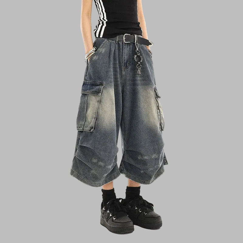 Dames Grunge Korte Wijde Cargo Jeans Shorts Bekijk opties