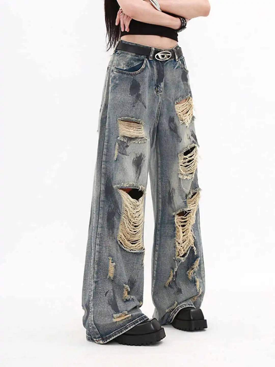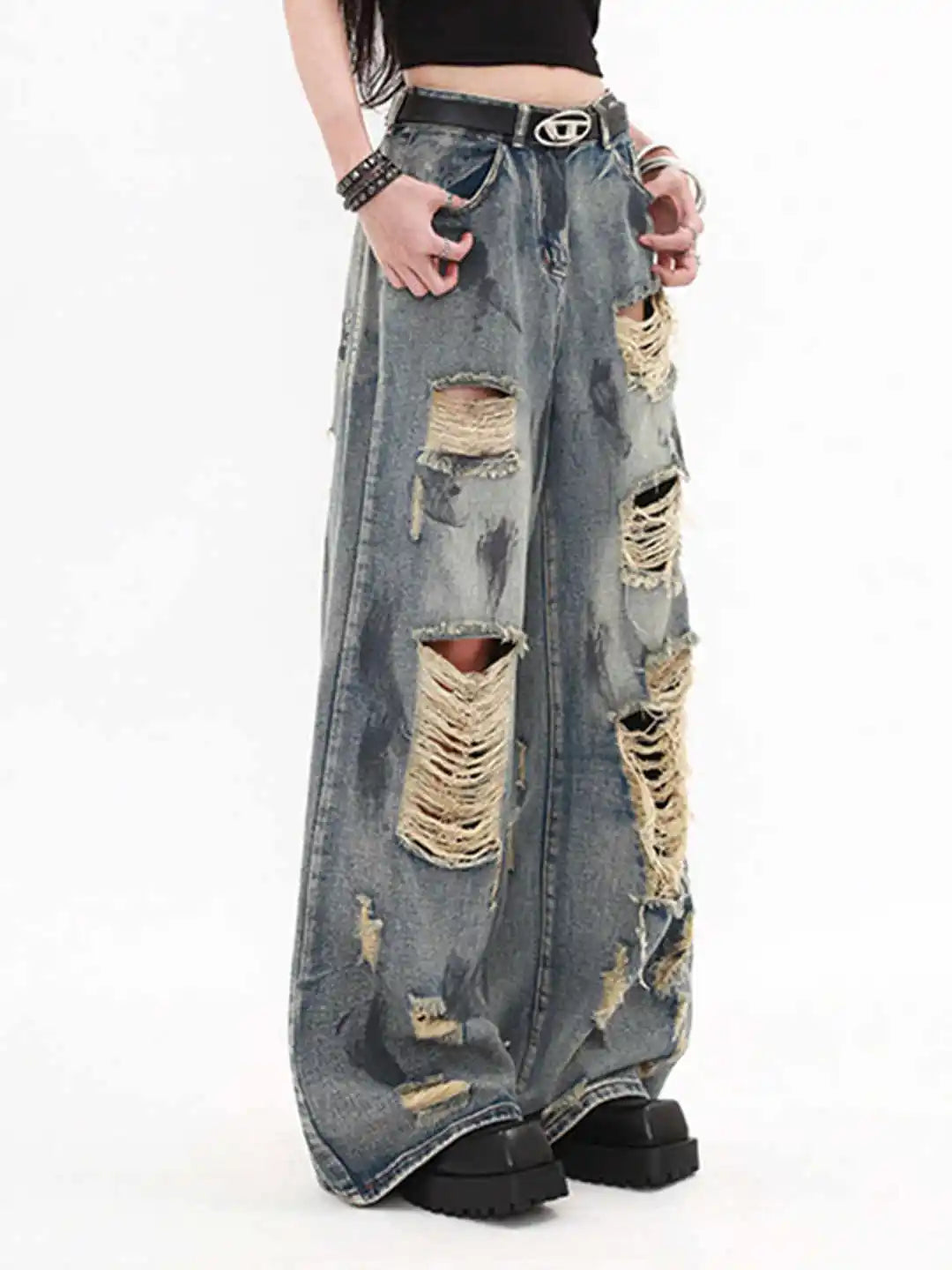 Dames Grunge Wijde Gescheurde Jeans Bekijk opties