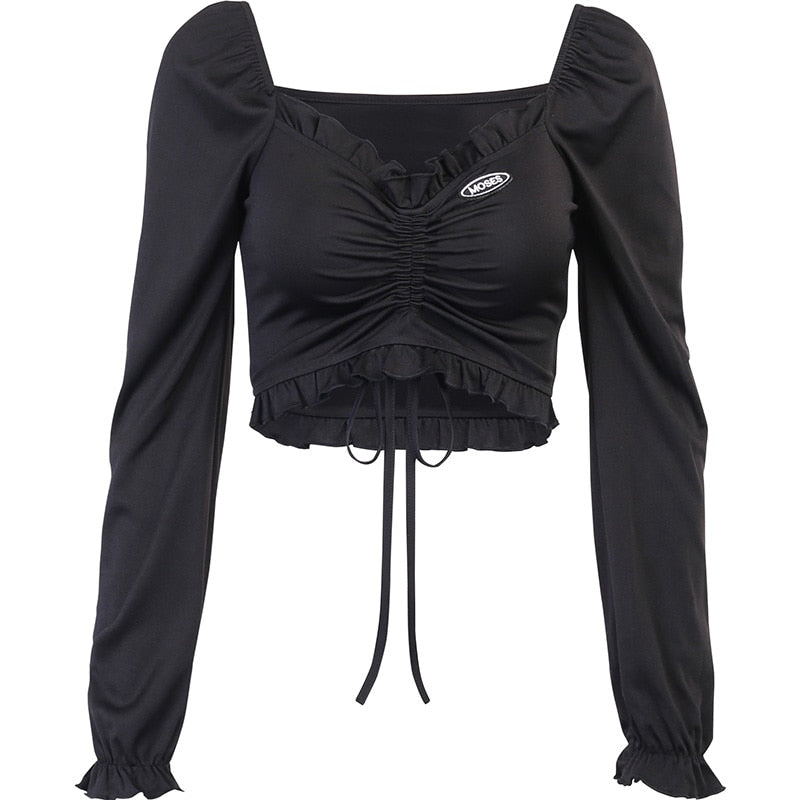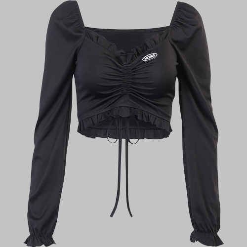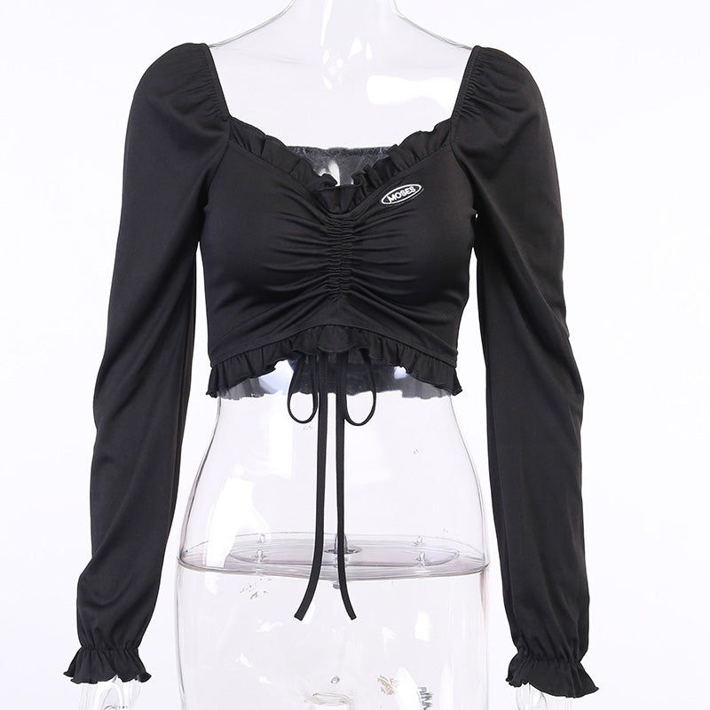 • Kenmerken: Lange mouwen, Sexy, Vetersluiting, Crop Top, Ruches
