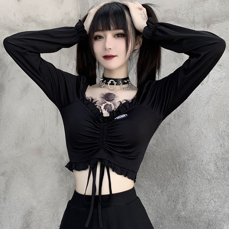 Laat je betoveren door de charmante elegantie van de Gothic Top, Uitnodiging tot Gothic Extravagantie!