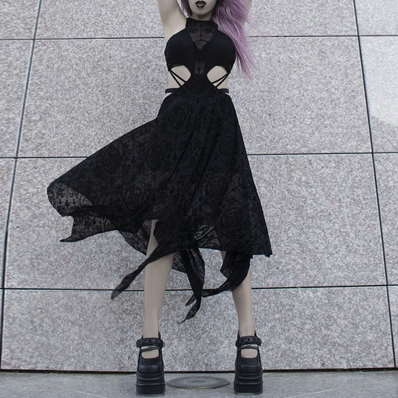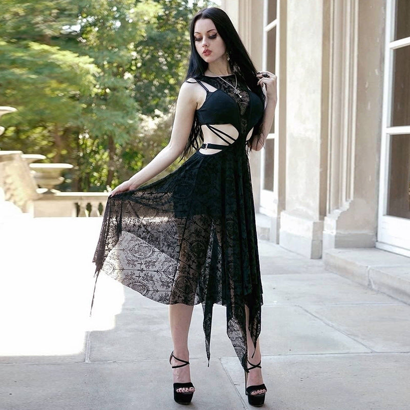 • Betoverende Gothic Esthetiek: Met een onweerstaanbare gothic esthetiek stelt deze jurk je in staat om een verleidelijke stijl uit te drukken, perfect voor warmere zomerdagen.