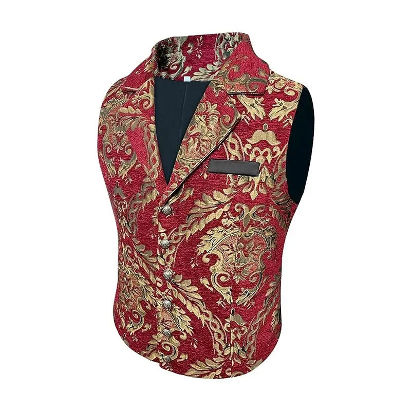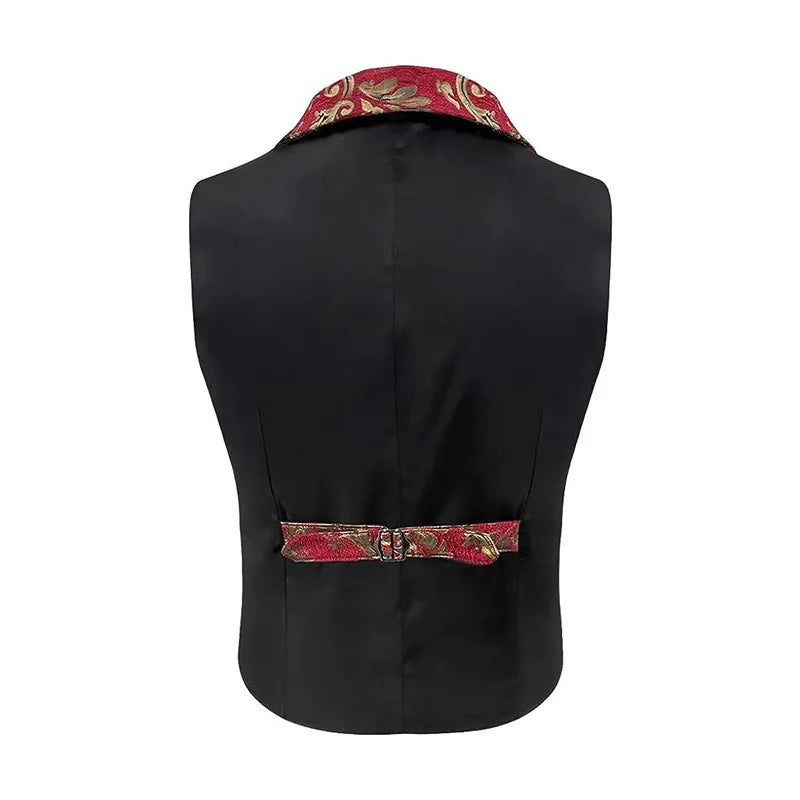 Elegante Steampunk Brokaat Gilet Rood Goud