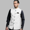 Elegante Witte Rock Gilet met Zwarte Mouwen