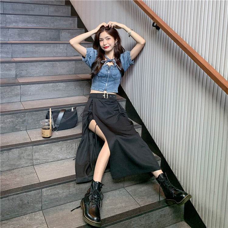 Gotische Lange Zwarte Rok