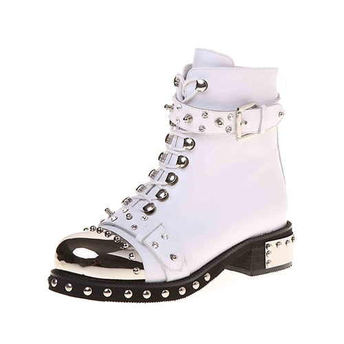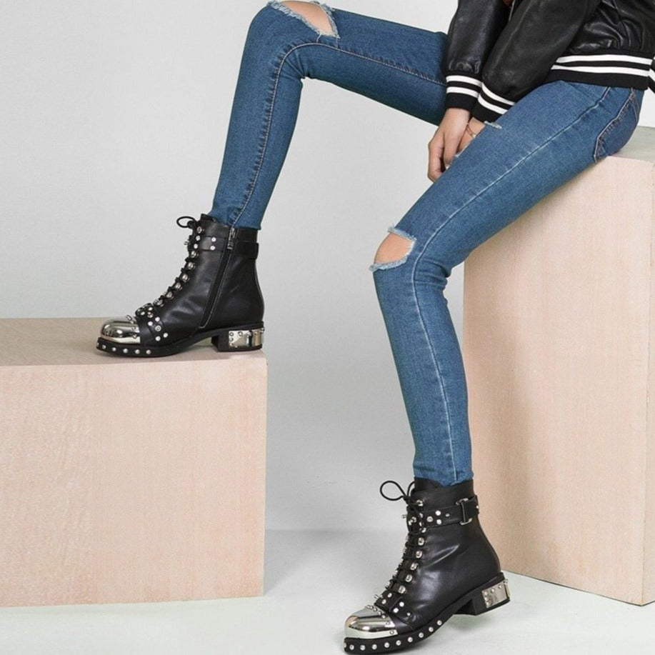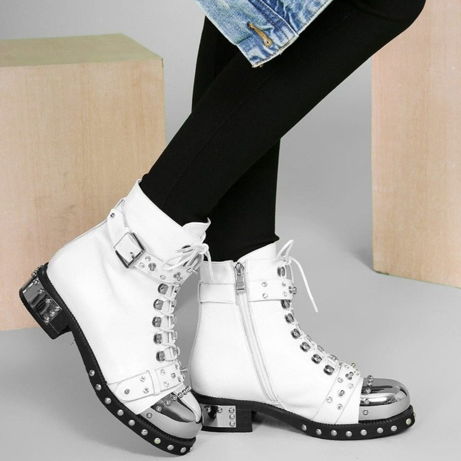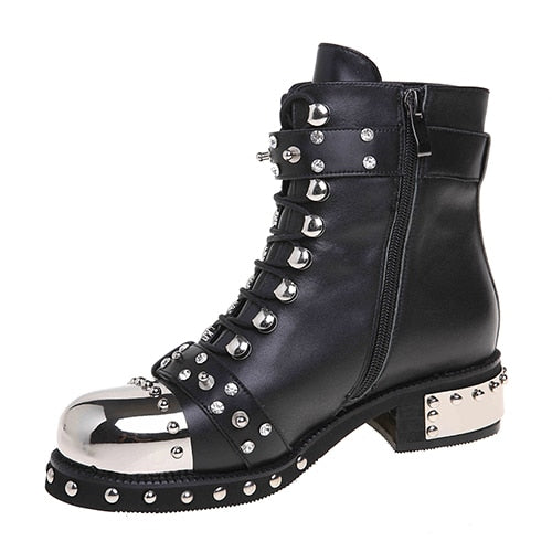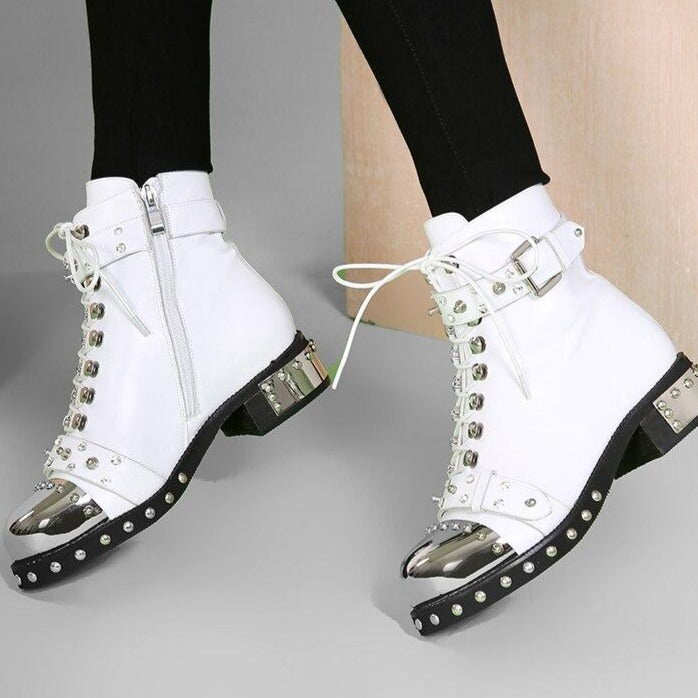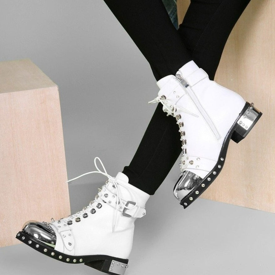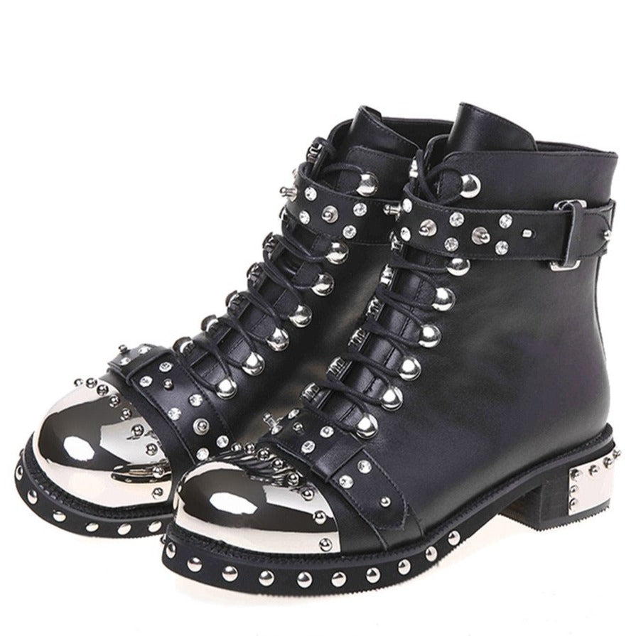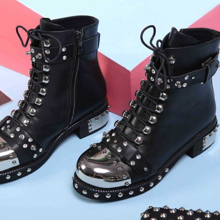 - Versieringen: decoratieve ijzeren studs, hiel en voorkant van de schoen versterkt met metaal