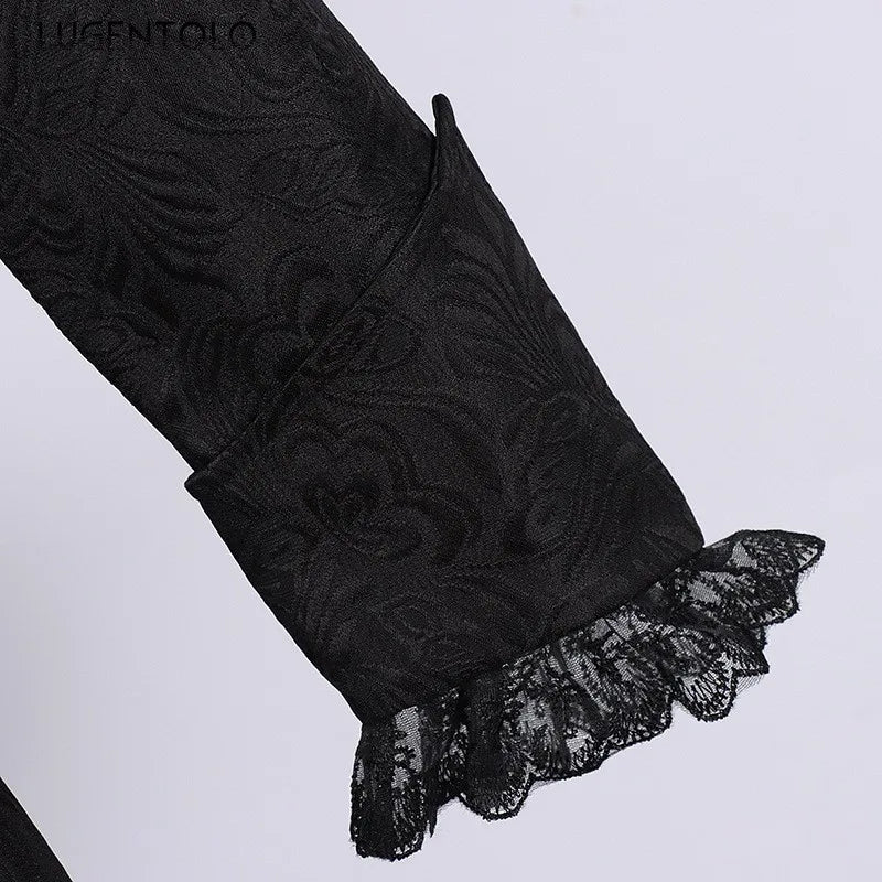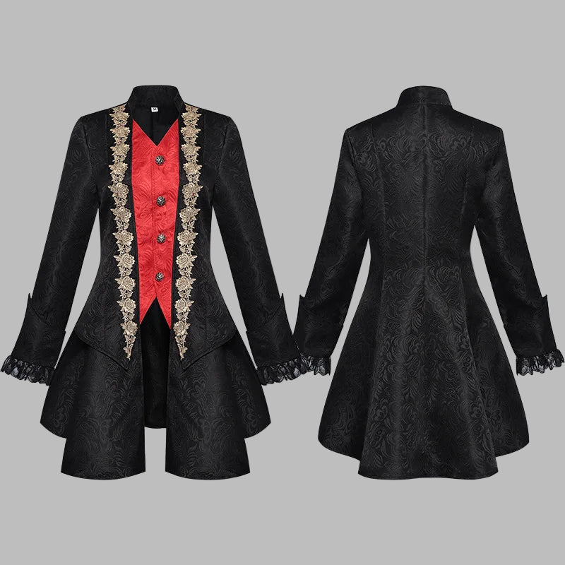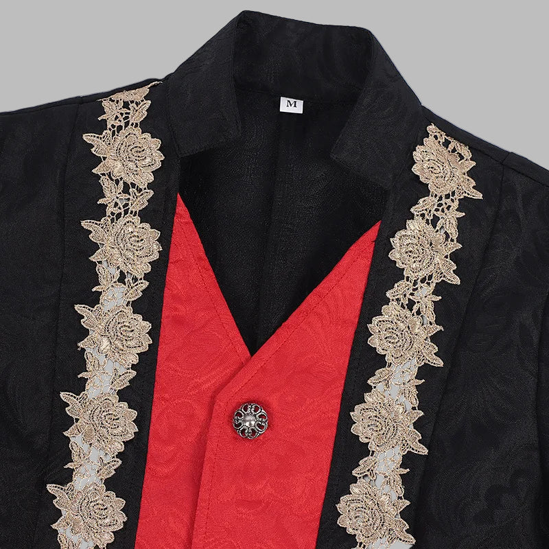 Gotische Damesjas Zwart met Rode Inzet en Kant