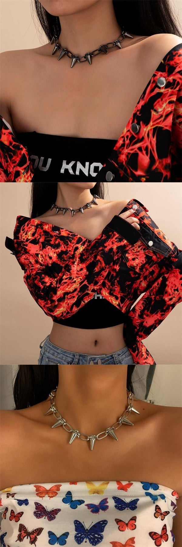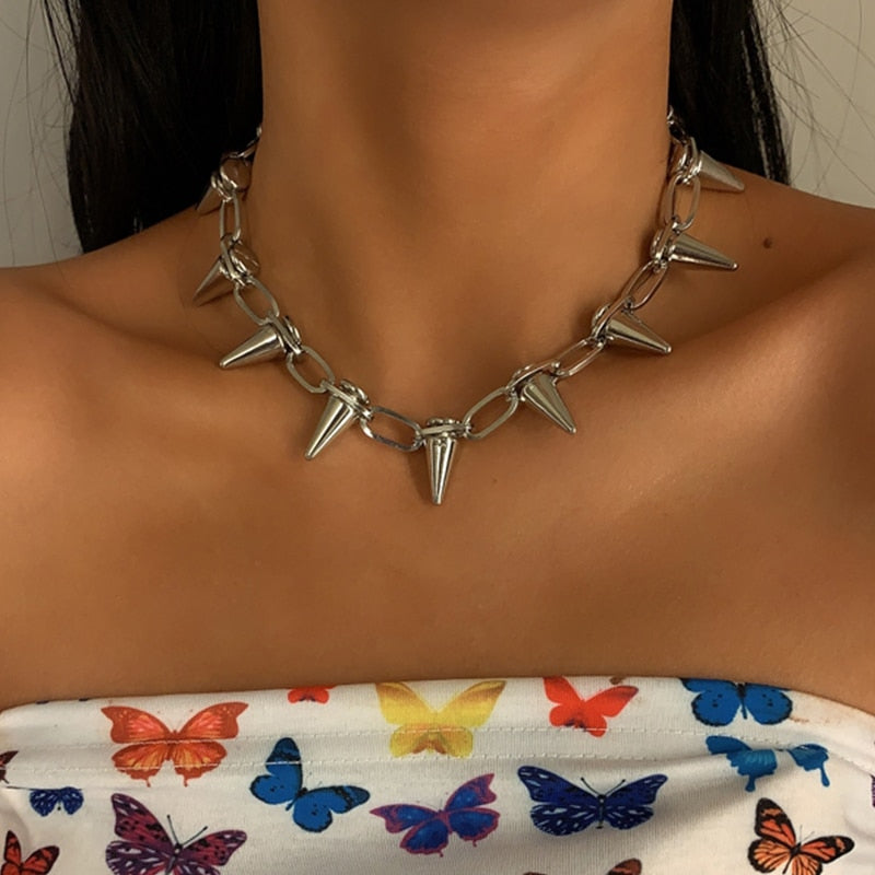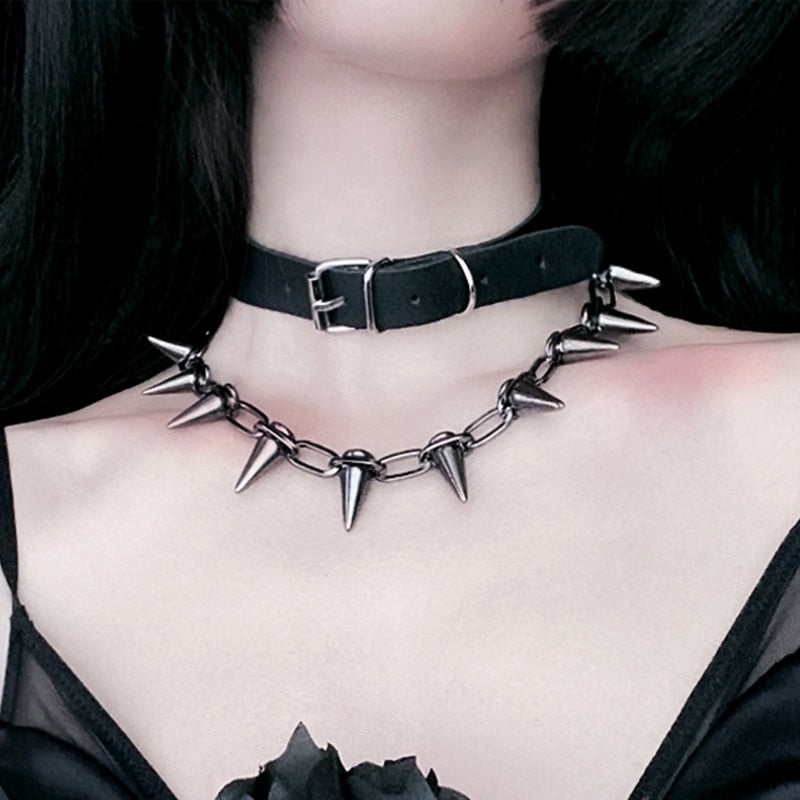 Gotische damesketting met stekel in zwarte kleur 35 cm