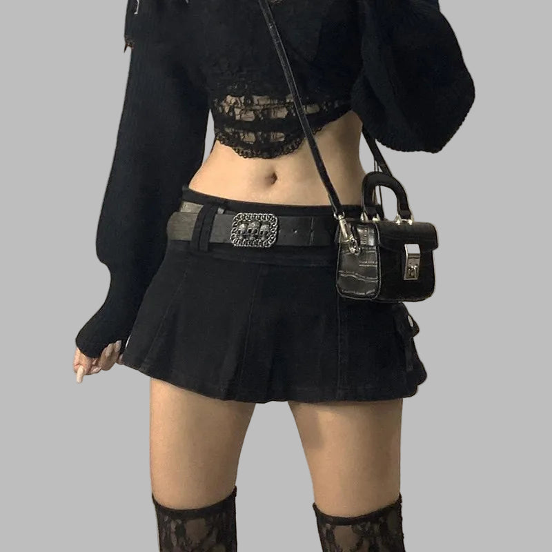 Gothic geplooide punk minirok met metalen applicatie Bekijk opties