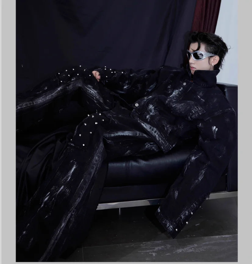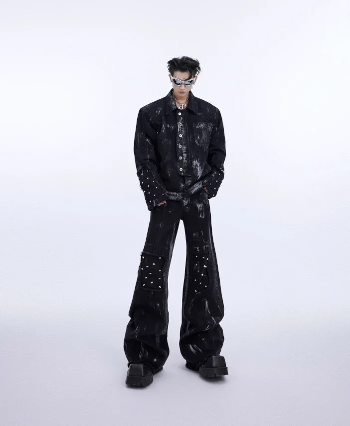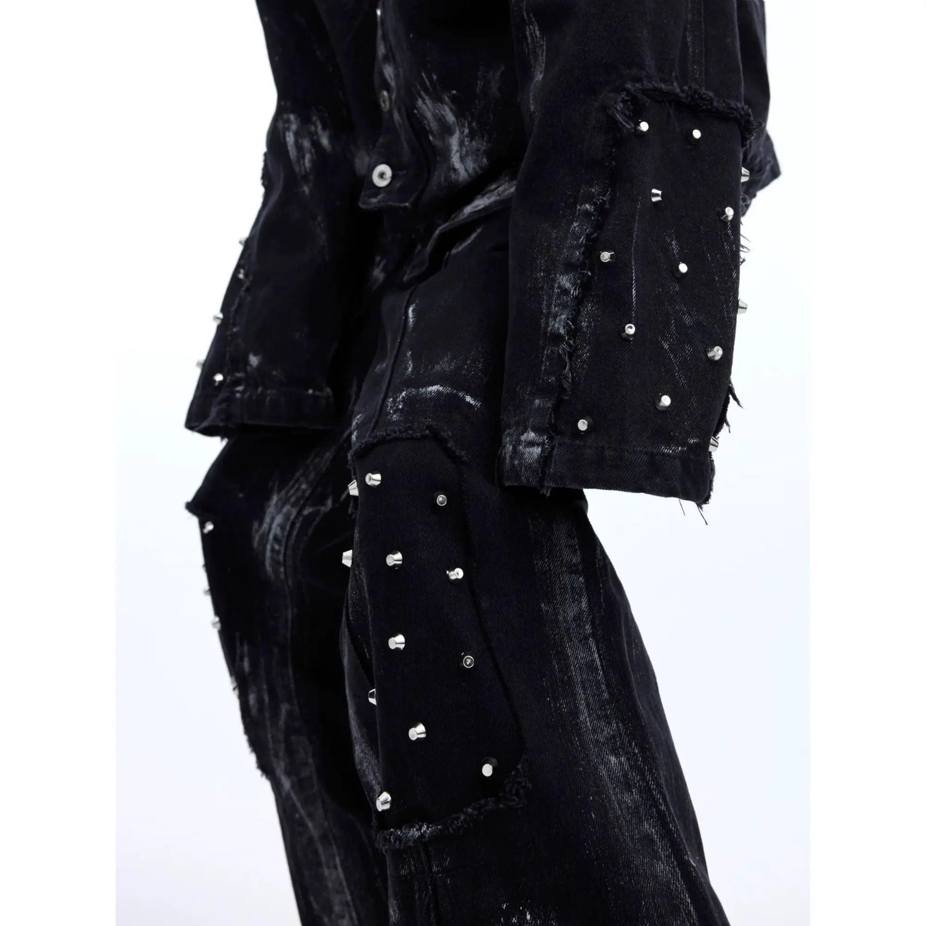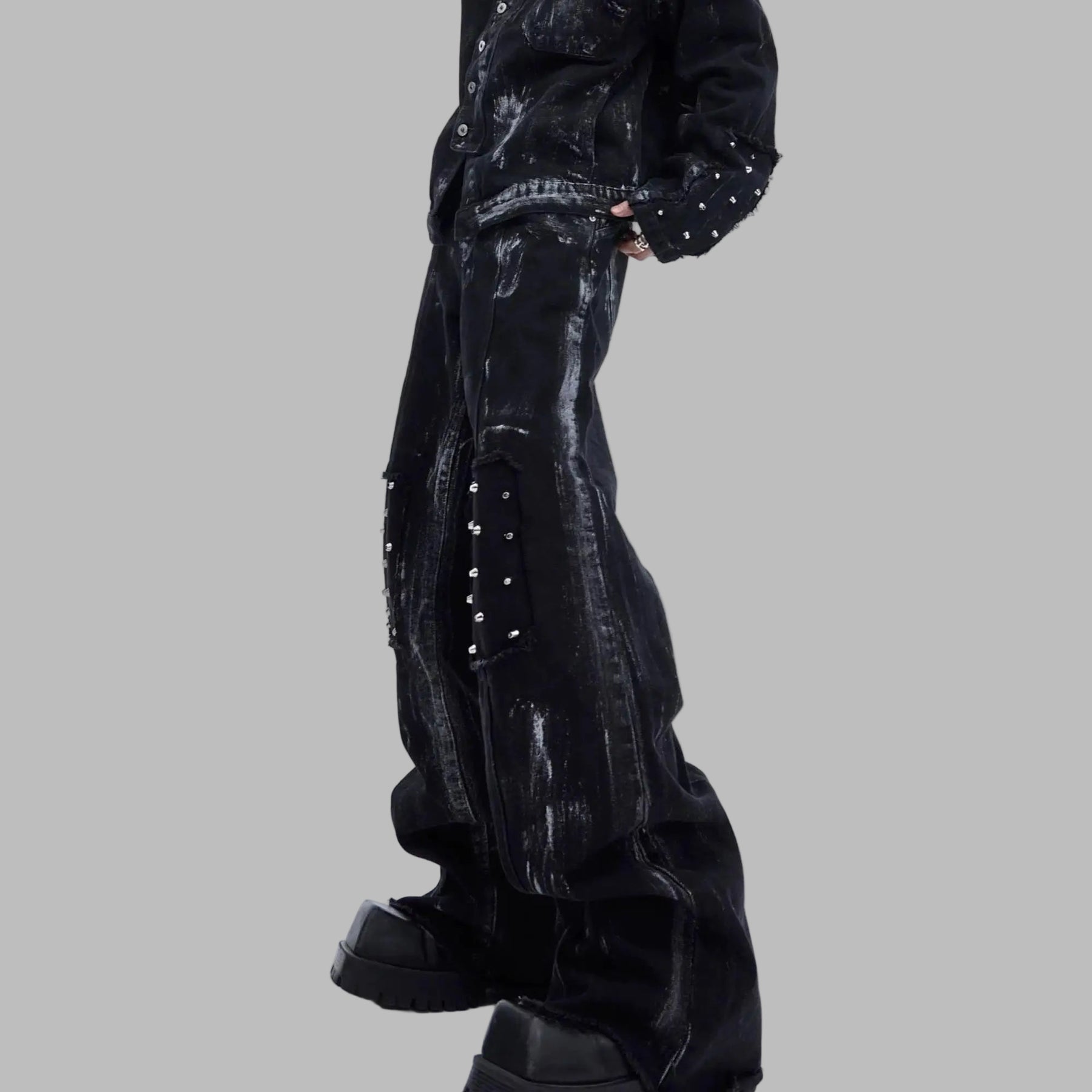 Gotische Grunge Broek Zwart Studs Gaten Vintage Oversized