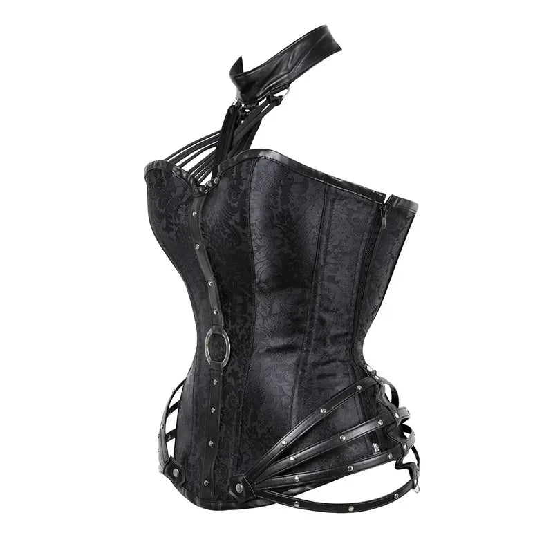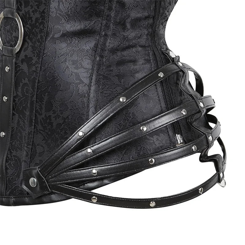Zwarte punk rock gotische korset met metalen riemen en studs