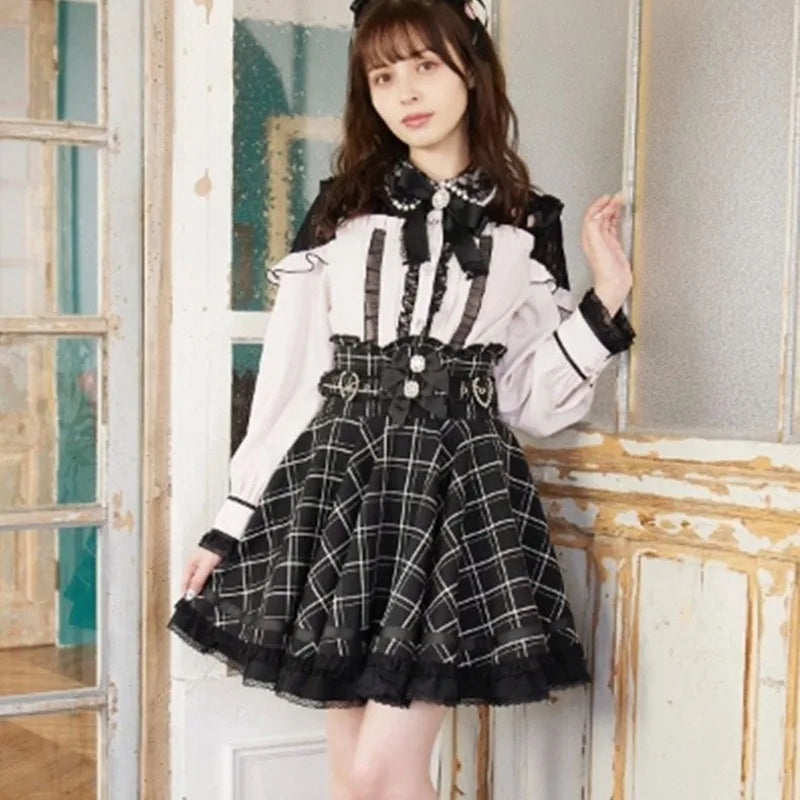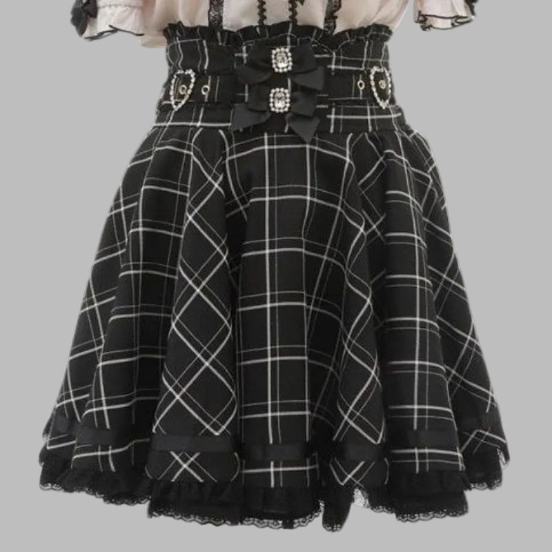 Gothic Punk Rock Ruit Rok met Strik Bekijk opties