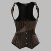 Gothic Steampunk Corset met Bruin-Zwarte Strepen en Leren Inzetstukken