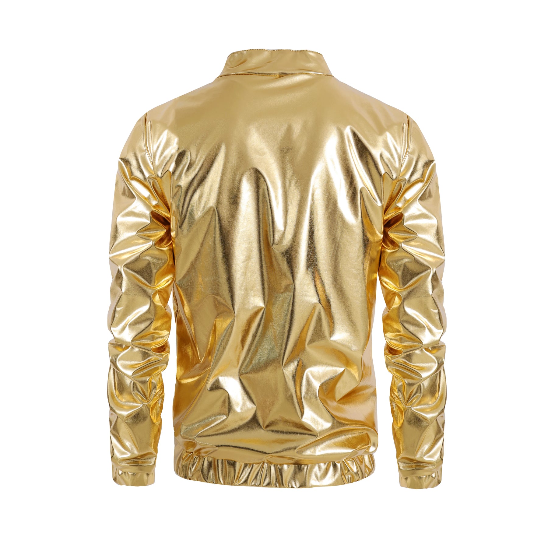 Gouden Glanzende Metallic Rock Bomberjack voor Mannen