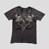 Grijs Metalen T-shirt met Schedels en Kruis Ornamentaal