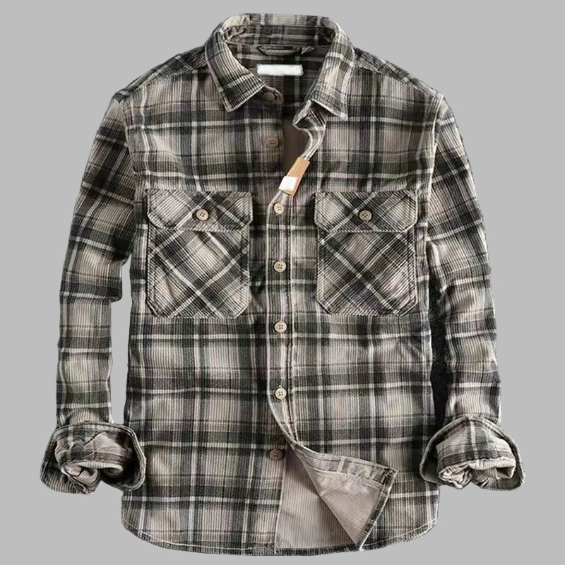 Grijze Flanellen Geruite Grunge Rock Overhemd met Zakken