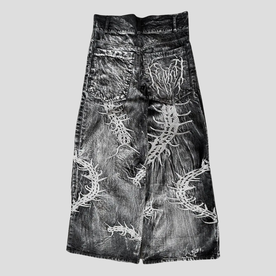 Metal Spódnica Jeansowa z Haftem Ciernistym Szara