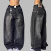 Grijze Metalen Baggy Grunge Jeans met Kettingen