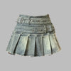 Grijze Plooirok van Denim met Metalen Bandjes Punk Rock