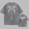 Grijze Vintage Metal T-Shirt met Engelvleugels Grunge
