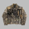 Grijze Vintage Washed Grunge Rock Metal Spijkerjas met Studs XXL