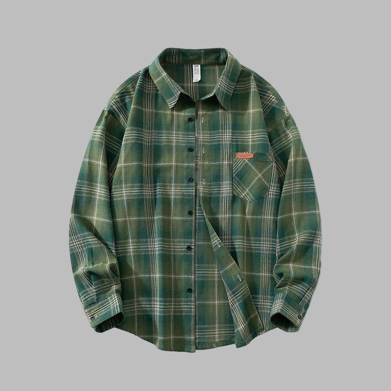 Groen Geruit Grunge Oversized Overhemd met Zak