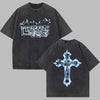 Grunge Punk Rock T-shirt met Blauwe Kruis Oversize