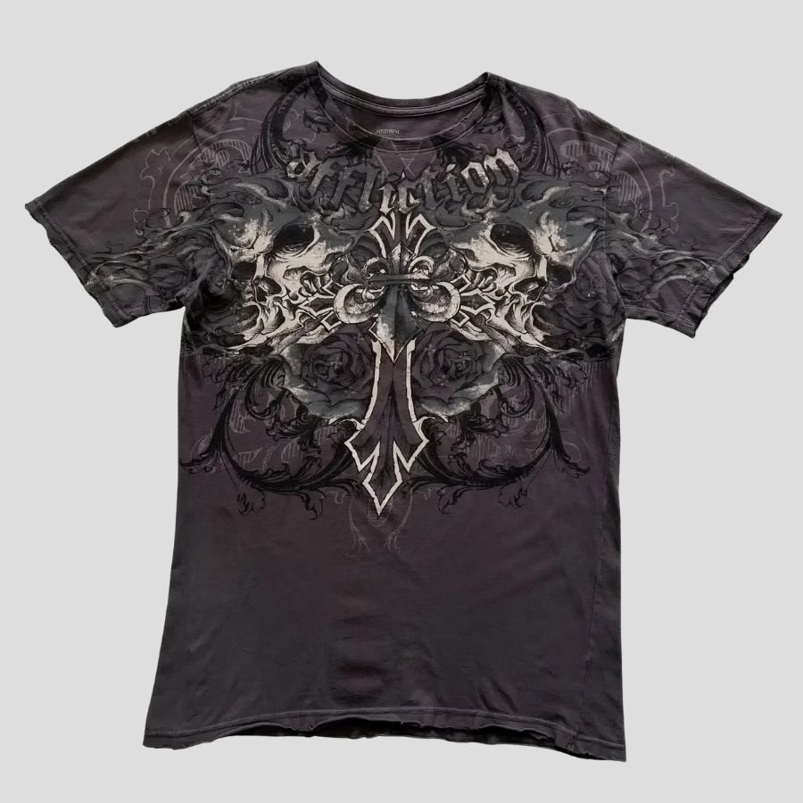 Grunge Punk T-shirt met Schedels en Kruis Gotisch
