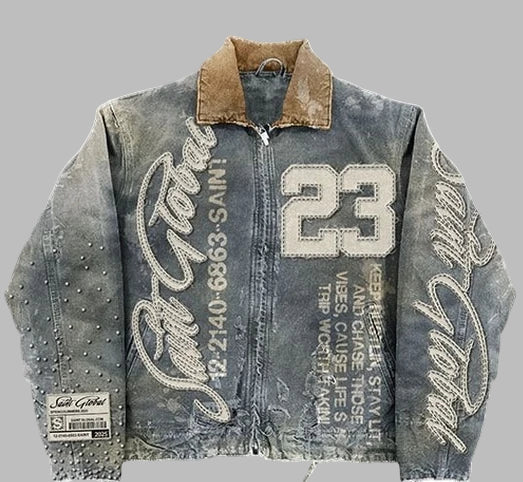 Jeansjack Rock Grunge Metal met Teksten en Vintage Studs
