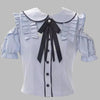 Jirai Kei Grijze Blouse met Strik en Ruches Korte Mouw