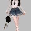 Jirai Kei jeansrok met witte kant en ruches Bekijk opties