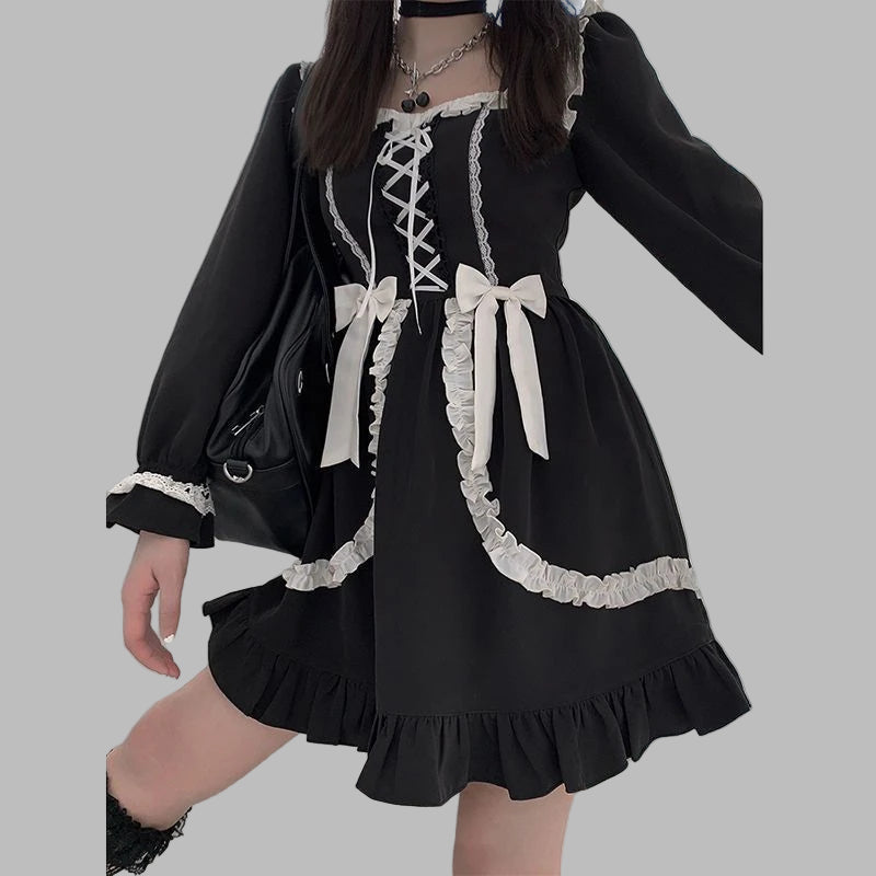 Jirai Kei jurk met witte strikken en vetersluiting zwart
