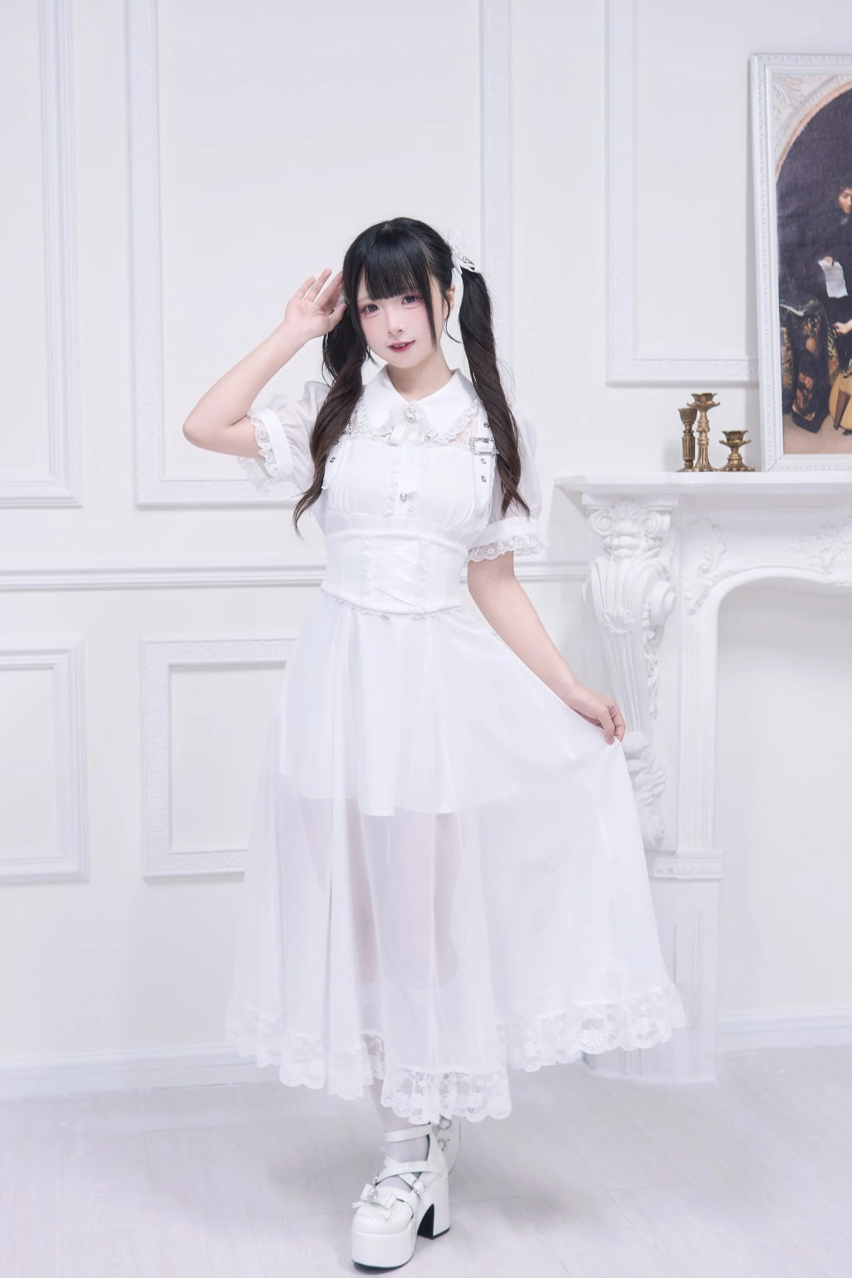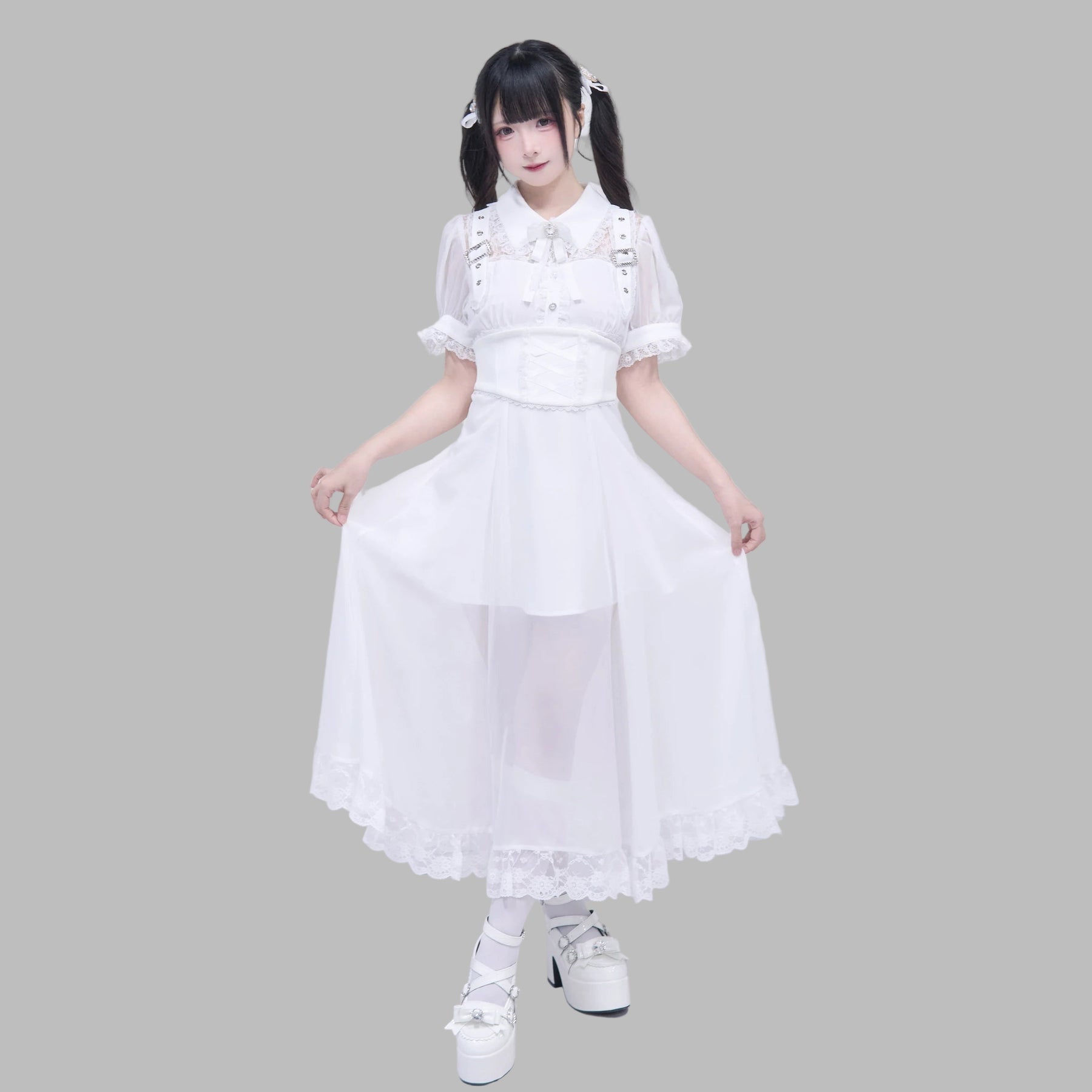 Jirai Kei Lange Witte Jurk met Ruches Kawaii L