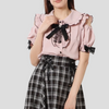 Jirai Kei Roze Blouse met Zwarte Strik Korte Mouw