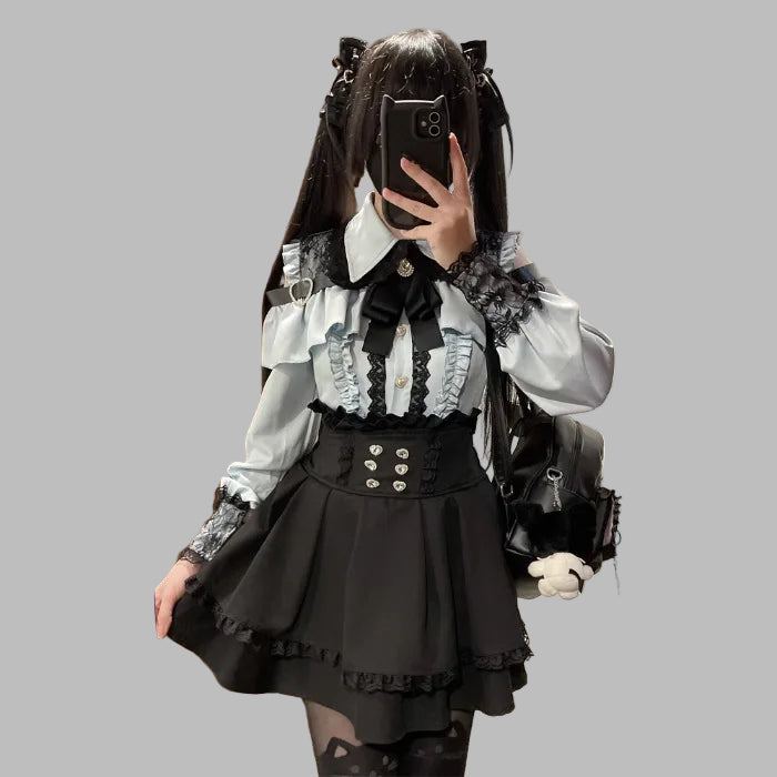 Jirai Kei Set met Zwarte Kanten Ruches Bekijk opties