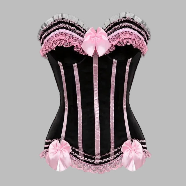 Jirai Kei Zwart Roze Korset met Strikken en Kant