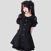 Jirai Kei Zwarte Jurk met Hartvormige Knopen en Ruches L