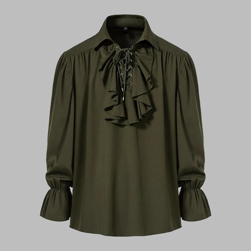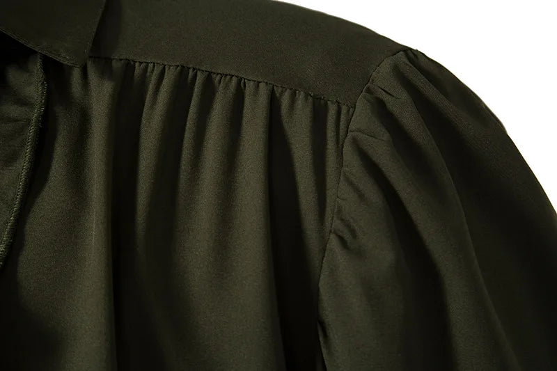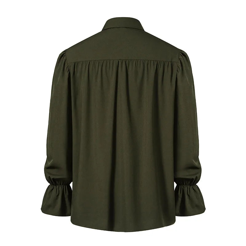 Khaki Rock Blouse met Jabots en Pofmouwen