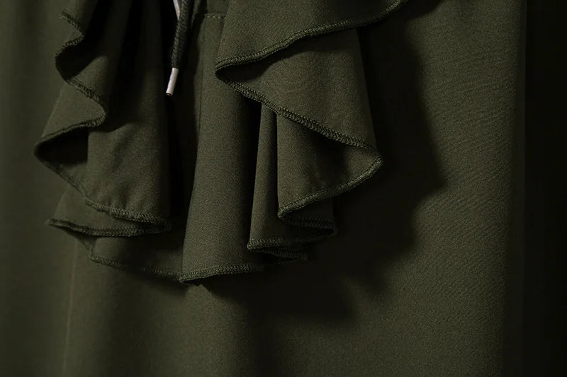 Khaki Rock Blouse met Jabots en Pofmouwen Bekijk opties