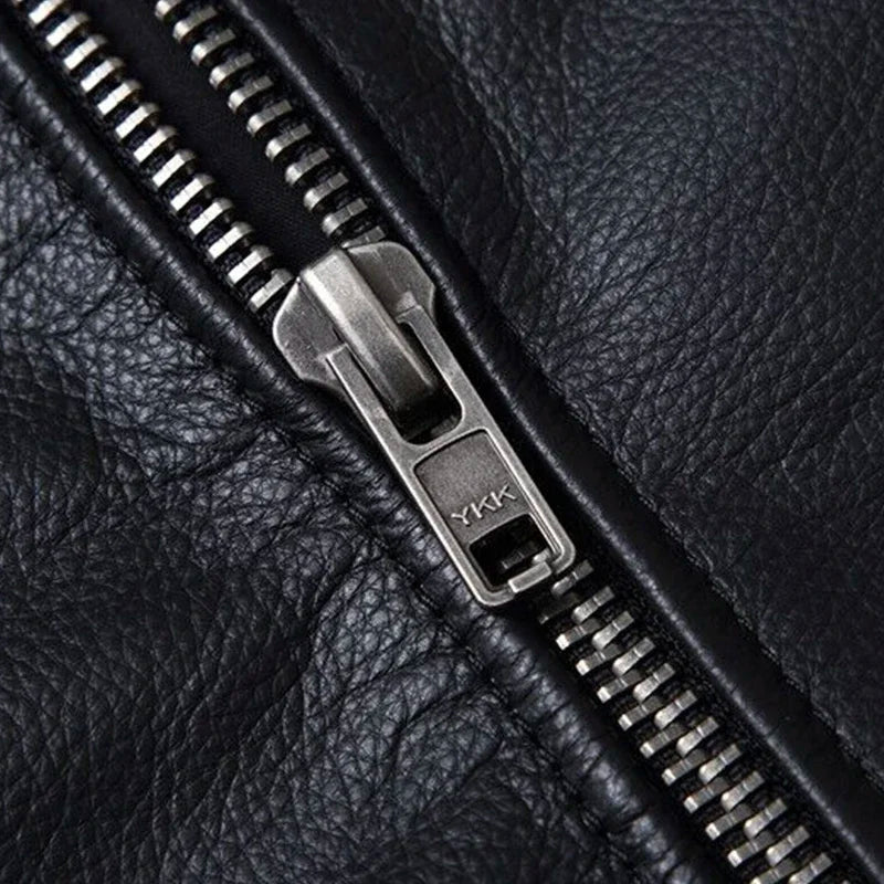 Klassieke Leren Motorjas voor Heren in Metalstijl